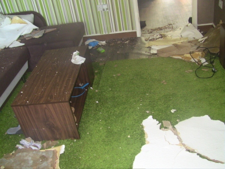 15 Lipca 2012 roku zauważyłam mokrą plamę na suficie w living roomie , natychmiast zgłosiliśmy to na stronie sandwell homes jako pękniętą rurkę i zalanie. Ponieważ to była niedziela po południu to nawet nie dzwoniliśmy. Cały poniedziałek czekaliśmy na jakikolwiek krok z ich strony ,aż w końcu zadzwoniliśmy ok 15 i zgłosiliśmy jeszcze raz ten sam problem. We wtorek przyszedł INŻYNIER bez narzędzi bez niczego , podrapał się po głowie zobaczył, że łazienka jest na dole, a plamka na suficie jest u góry więc tylko zapytał czy się coś nie wylało u góry. Powiedział że zgłosi problem i dostaniemy listem datę naprawy.